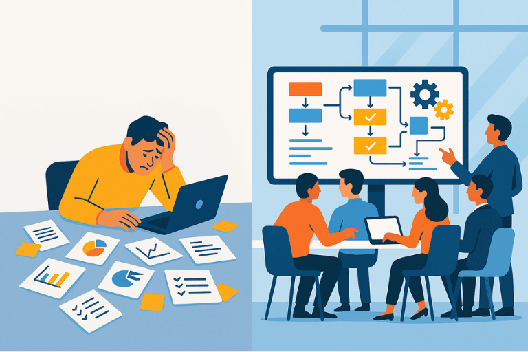 | Ergebnis | Kürzere Durchlaufzeiten, weniger Abstimmung | Zeitersparnis, weniger Fehler, bessere Skalierung |